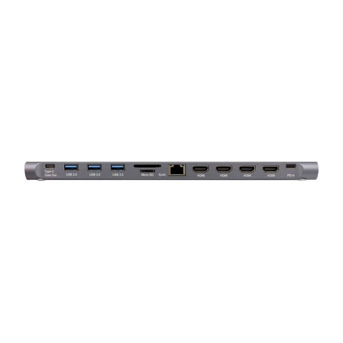 Cette station d’accueil 13 en 1 à trois écrans transforme votre ordinateur portable USB-C en un poste de travail complet avec une sortie numérique DisplayPort MST et deux sorties HDMI.