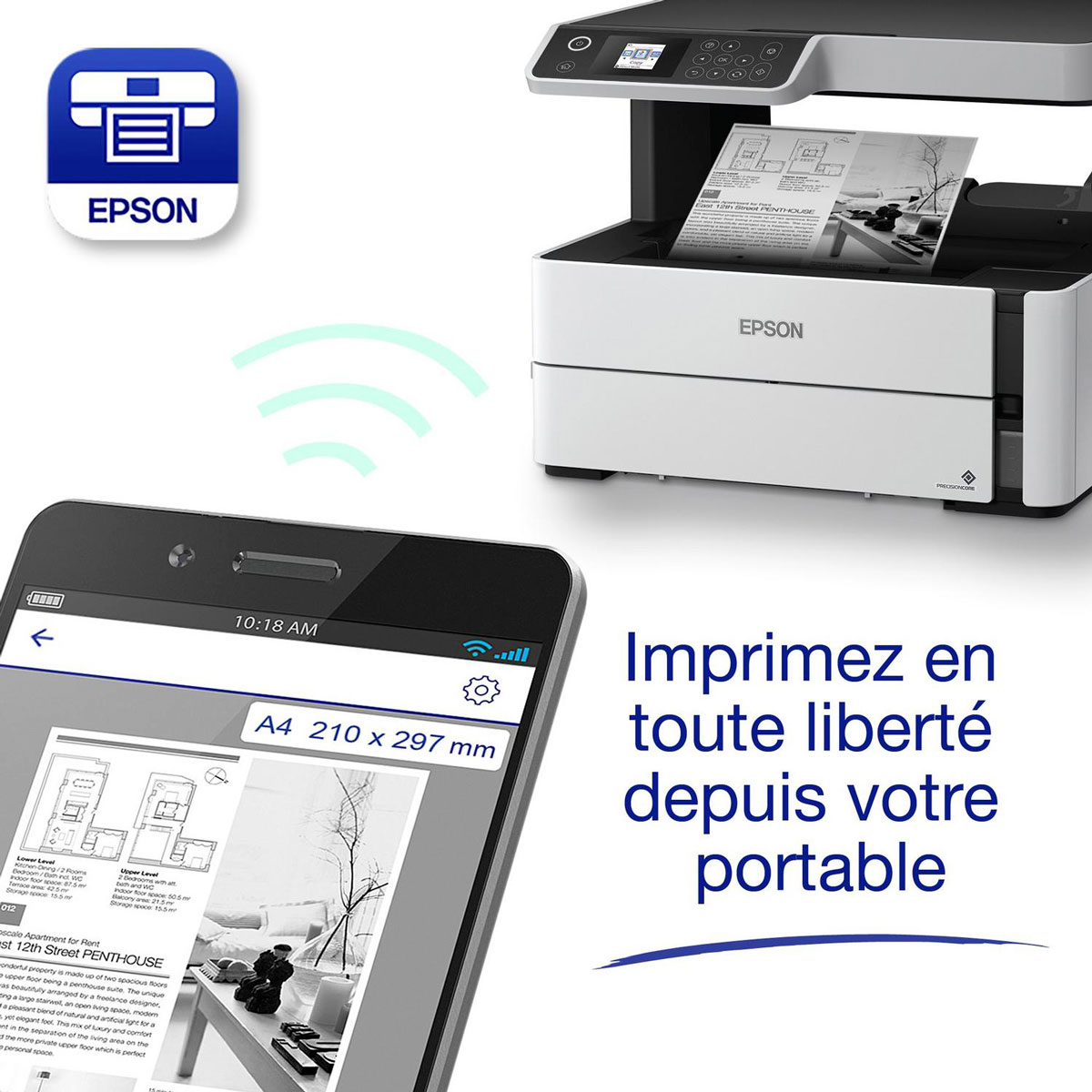 Imprimez en déplacement, avec Wi-Fi Direct et l’application Epson iPrint. Avec votre mobile, votre ordinateur portable ou votre tablette, vous pourrez envoyer des documents à imprimer depuis presque n’importe où.