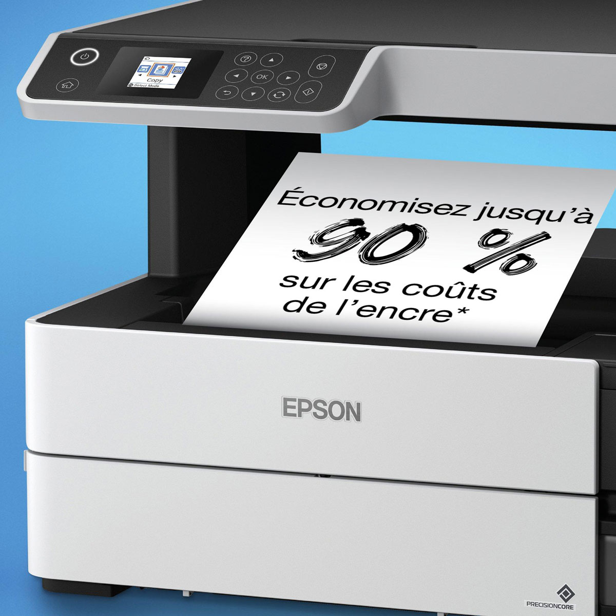 Avec un réservoir frontal et un affichage du niveau d’encre, l’imprimante M2170 est conçu pour être facile d’utilisation. Les bouteilles d’encre EcoTank sont équipées d’un système de pressurisation de l’air, permettant à l’encre de circuler dans le grand réservoir rechargeable sans avoir besoin de presser le flacon.