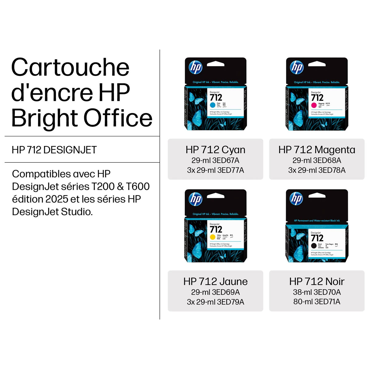 - Cartouche d’encre DesignJet HP 712, noir, 80 ml – 3ED71A