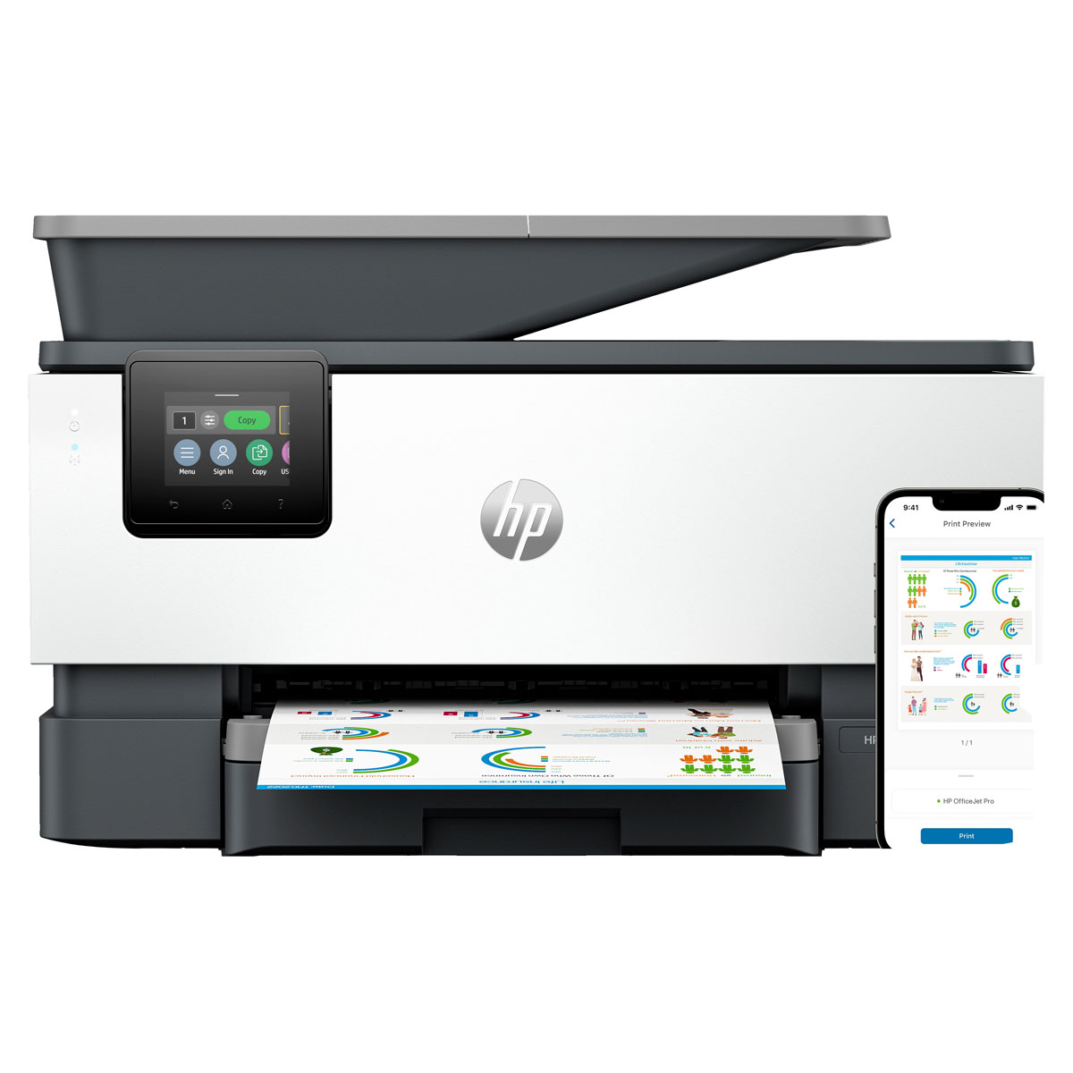 L’imprimante jet d’encre couleur professionnelle HP OfficeJet Pro 9120b conçue par le numéro 1 mondial pour les bureaux distribués et les effectifs hybrides, alliée à notre meilleure technologie pour vous aider dans la gestion de votre entreprise. Cette imprimante simplifie les flux de travail au sein de n’importe quel réseau. Numérisation/copie/télécopie inclus.