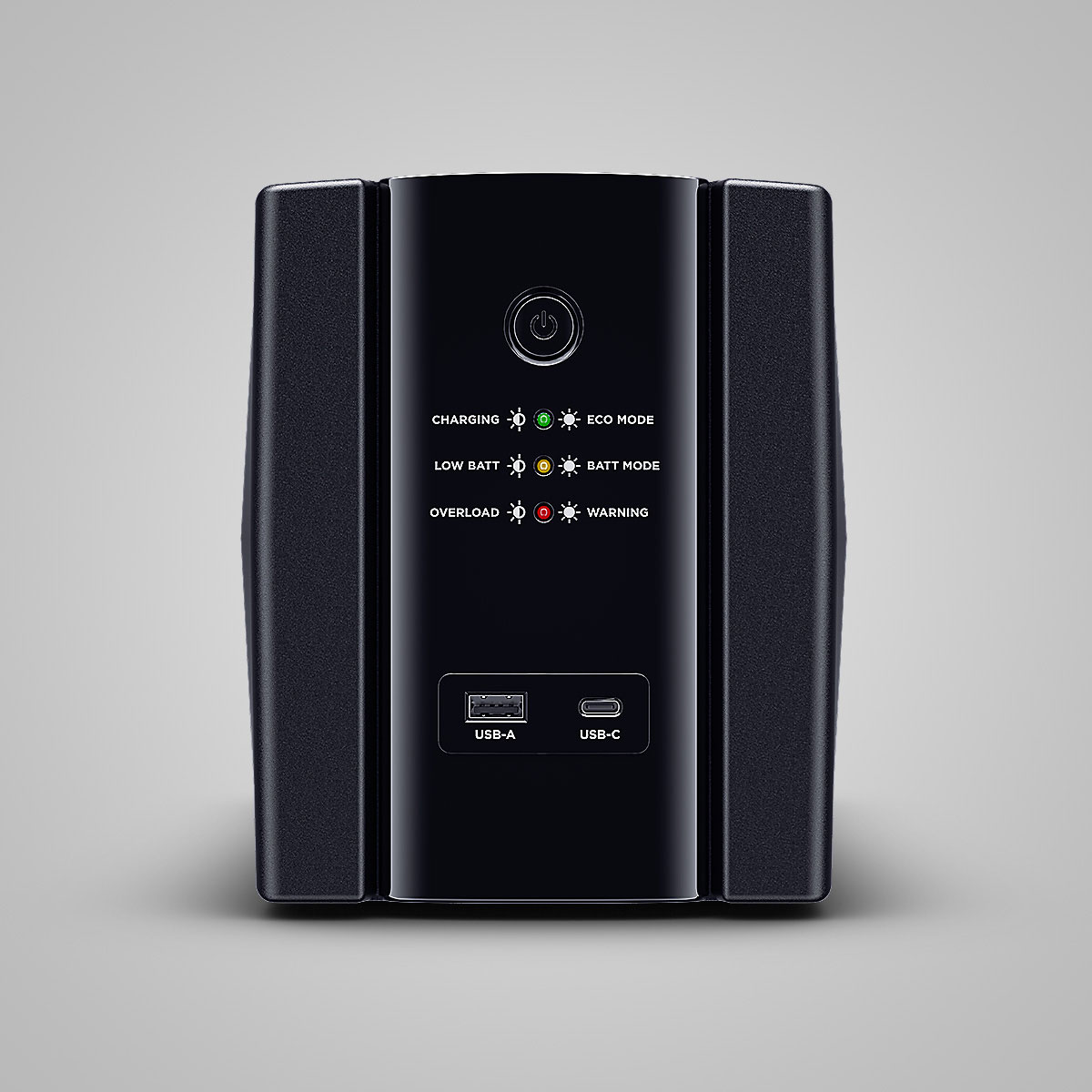 La conception brevetée GreenPower UPS™ Bypass permet d’obtenir une très faible consommation d’énergie afin de réduire les coûts énergétiques. Le voyant LED indique l’état de l’utilitaire, de la batterie et du fonctionnement de l’onduleur.