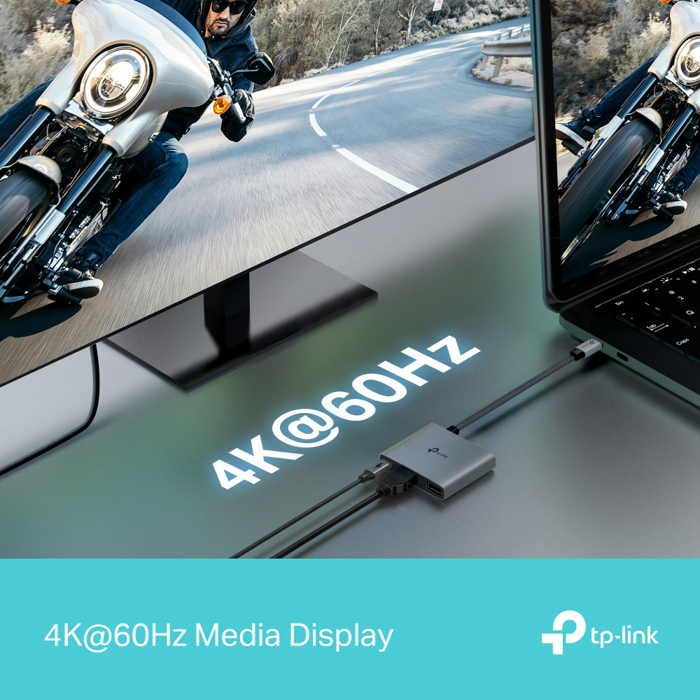 Hub USB-C 3 en 1 : le TP-LINK UH3020C transforme un seul port USB-C en 3 ports avec un HDMI 4K à 60 Hz, une alimentation 100 W et 1 port de données USB-A.