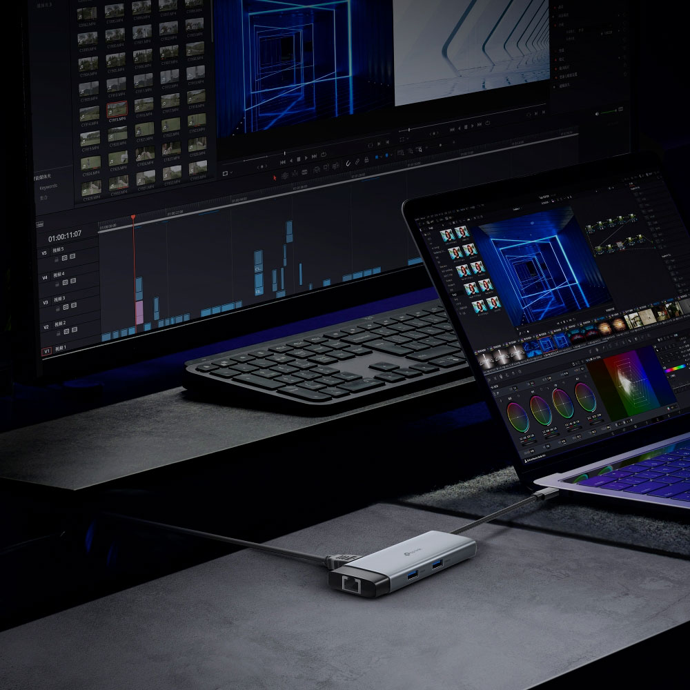 Charge rapide puissante de 100W : branchez le câble de charge sur l’UH6120C et fournissez en continu jusqu’à 100 W de puissance à votre PC pendant le transfert de fichiers ou la diffusion multimédia.
