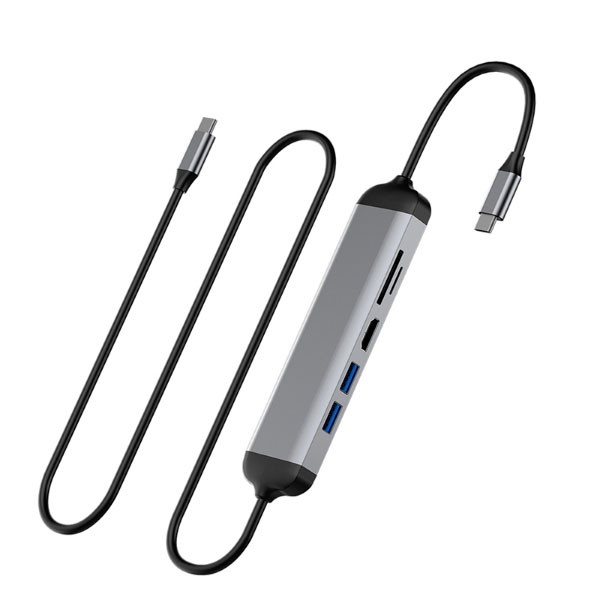 Hub 5 en 1 de type C vers 2* USB 3.0, transfert de données rapide, emplacement pour carte TF, emplacement pour carte SD, projecteur HDMI 4K vers écran TV, design breveté
